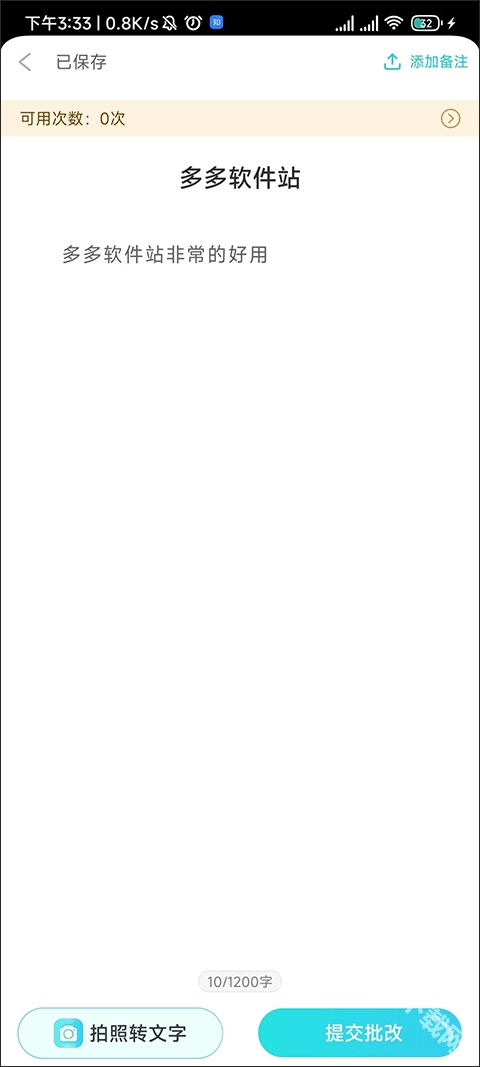 我们能够通过拍照直接把内容转换成文本,也可以把已经写好的作文直接一键复制粘贴到上面,完成编辑后点击提交就能进行批改。