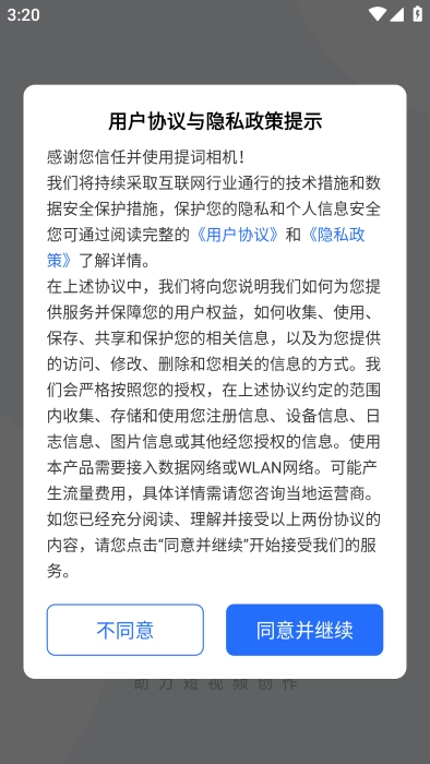 1、打开软件,需要确认并同意隐私政策和用户协议。