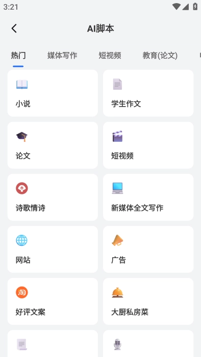 5、软件的AI脚本涵盖多种类型,都能够通过AI来生成。