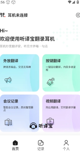 3、首页配备外放翻译、按键翻译等多种功能,还支持连接耳机使用。