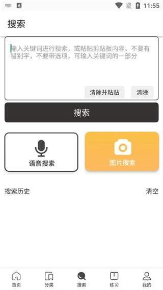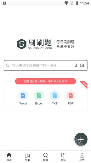 1、进入刷刷题之后就可以看到可以直接通过搜索文字或者语音拍摄对应内容查找数据;