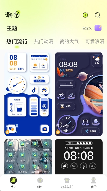 1. 打开潮图壁纸,在首页点击“自定义”功能。