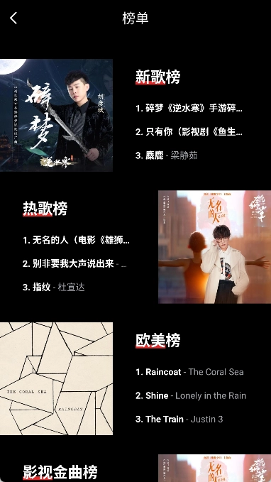 - 多种音乐排行榜实时更新,让用户了解最新热门歌曲。