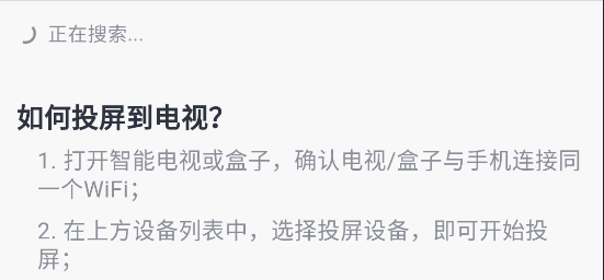 1、在播放页面点击右上角的TV图标,软件会自动搜索投屏设备。