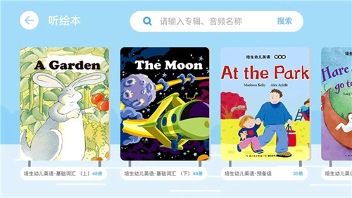 字母入门,词汇拓展,单词短句,视听素材,绘本读物,睡前故事,亲子情景对话一应俱全,多方位提升孩子听说能力。