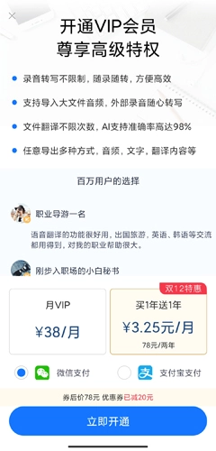 2、价格上38元/月,78元/2年,可以通过微信和支付宝支付。