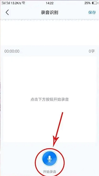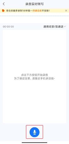 2、进入功能界面后,点击下方的蓝色按钮进行语音转写