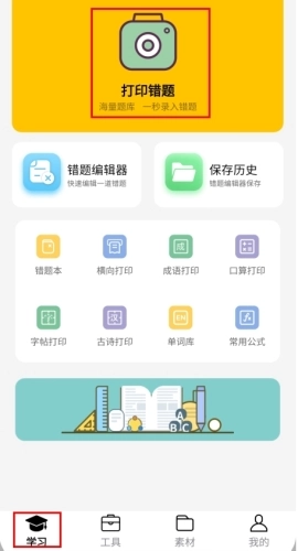 1、在首页页面中点击打印错题按钮;