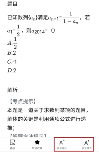 3、打开错题之后,就可以调整大小了。