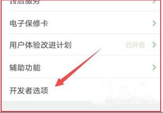 5、打开开发者模式后回到更多设置选项,把页面滑动到最下面可以看到有个开发者选项。点击打开。