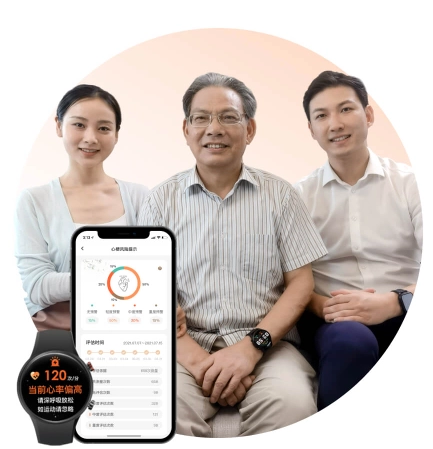子女家人可同步关注,远程监控、管理父母身体健康情况,专业团队实时远程沟通,根据数据异动及时通知用户及家人;