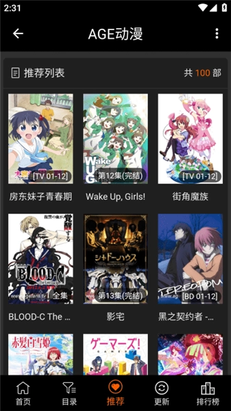 3、推荐页面:会推荐前100部受欢迎的动漫;