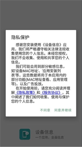 1、安装好本站提供的设备信息,进入之后先同意用户协议;