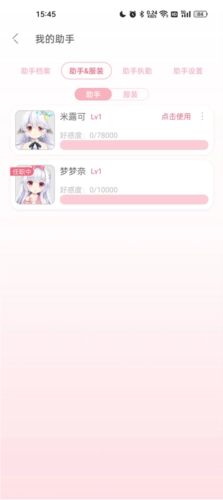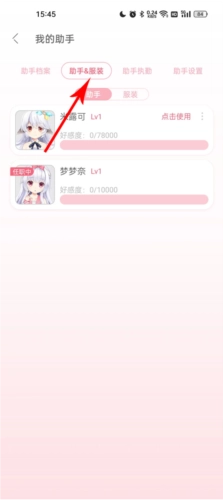 5、进入到助手服装之后,会显示你拥有的所有二次元角色,想使用哪个点击即可切换。