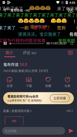 5、在观看的过程中我们可以打开弹幕、、收藏、分享等。