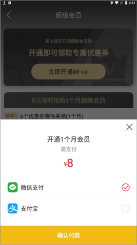 3、进入付款界面,选择支付方式,点击【确认付款】。