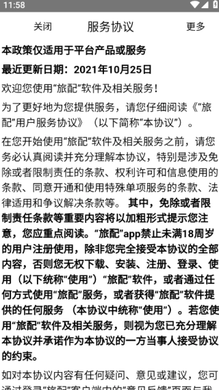 4、为用户提供完整版的服务协议,需要阅读并理解。