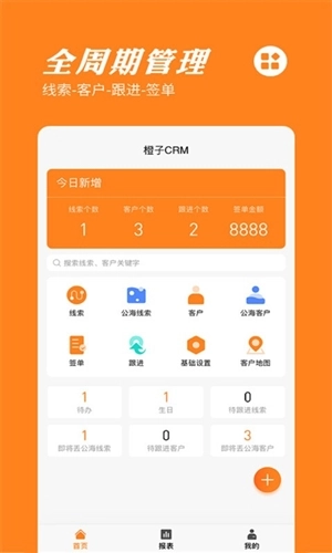 3.软件提供了多种的板块,包含线索客户跟进以及签单都有所涉及,辅助销售人员的工作开展。