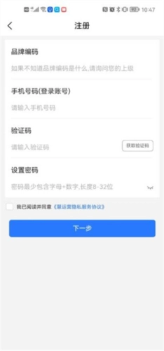 3、填写个人信息,品牌编码不知道的话可以问问你的上级。