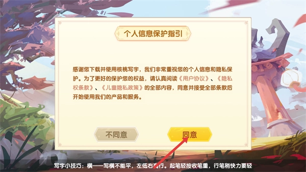 1、仔细阅读【个人信息保护指引】里包含的《用户协议》《隐私权条款》《儿童隐私政策》相关内容,确认无误后,点击【同意】按钮,即可继续推进应用的后续流程。