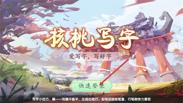 2、在显示标语“爱写字,写好字”的【核桃写字】启动页,点击【快速登录】按钮,即可进入账号登录的操作界面。