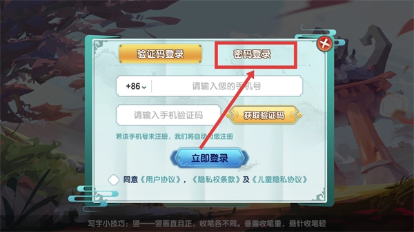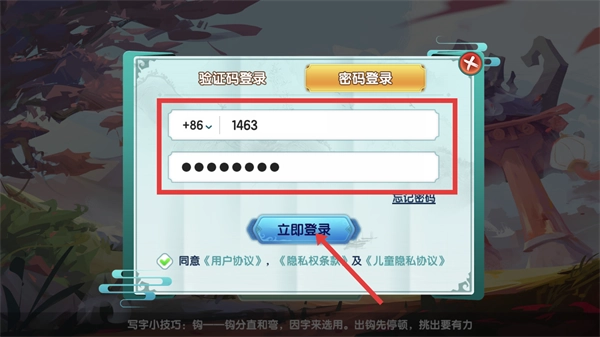 4、在密码登录页面输入【手机号】和【密码】,勾选对应的协议后,点击【立即登录】按钮即可完成账号登录。