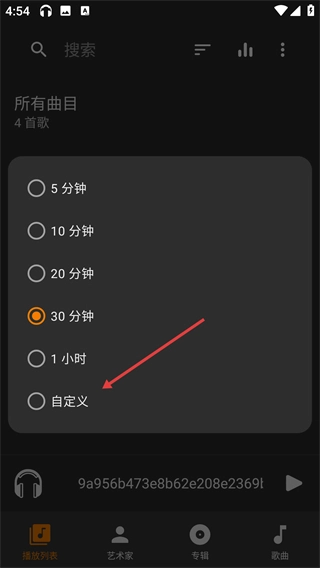 3、在定时选项里,选择【自定义】后,就能进入时长手动设置界面,从而灵活调整定时时间。