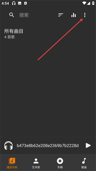 1、在音乐应用的播放列表页面,点击右上角的三点图标,即可打开功能操作的下拉菜单。