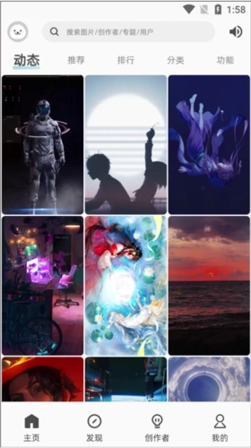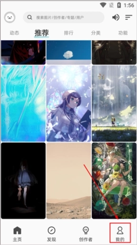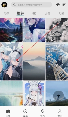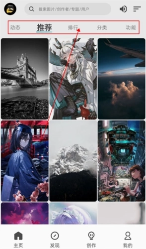 用户登录本站的软件后,即可进入首页,在页面上方挑选自己心仪的壁纸分类。