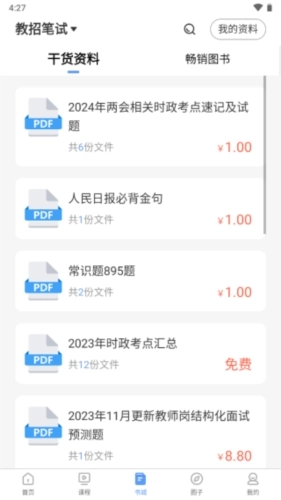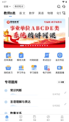 可以查看关于教资的历年真题,专项题库等海量题库