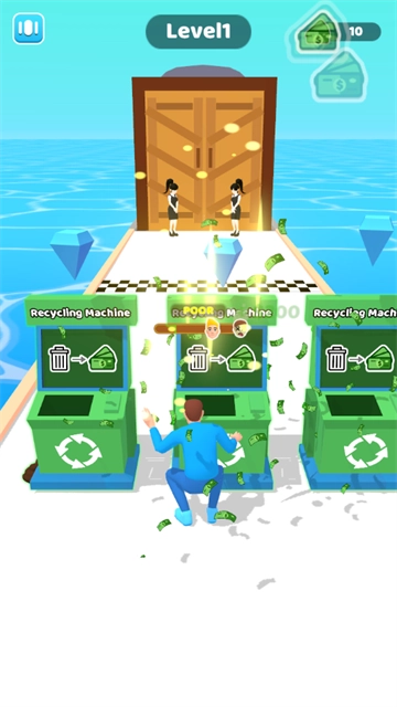 1、为了帮助主角变帅变富,你需要收集路上所有的垃圾;