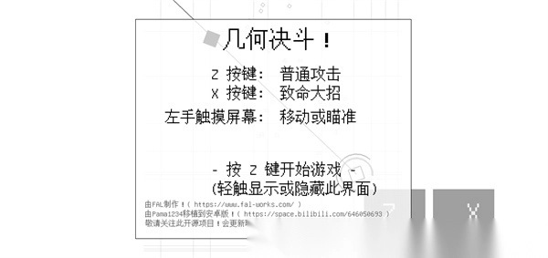 1、打开几何决斗游戏后,z按键开始游戏;