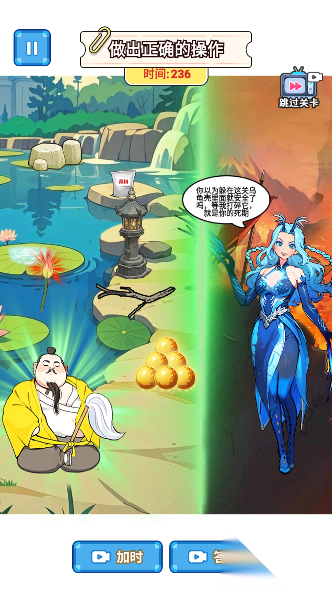 3、拾取掉落的金丹,当积累到足够数量时,就能解锁更为强大的技能,借助这些技能可以更有效地阻拦坏人的追赶。