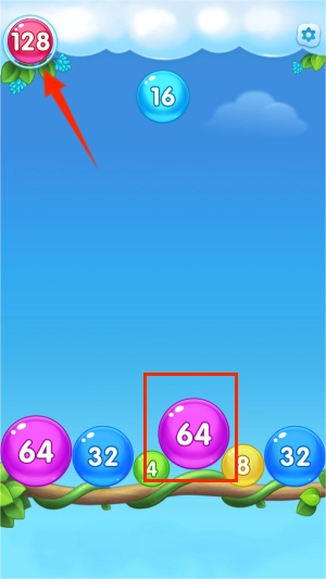1、基础玩法是把两个数字相同的气球拖拽到一块儿进行合成,从而生成数值更高的新气球。