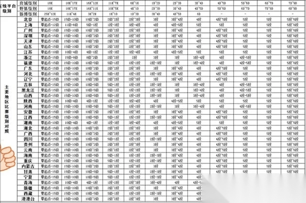 腾讯围棋拥有一套属于自己的段级位体系,从最低的18k直至业余最高的9D,职业棋手更是设有专属的职业段位。那么,腾讯围棋里的级段位与全国各地线下的围棋级段位之间,究竟存在着怎样的对应关系呢?请看下图,一目了然。