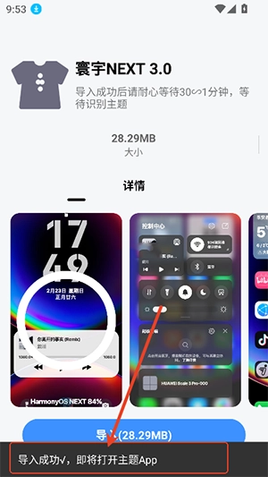 5、显示导入成功,就表示已经成功下载主题了