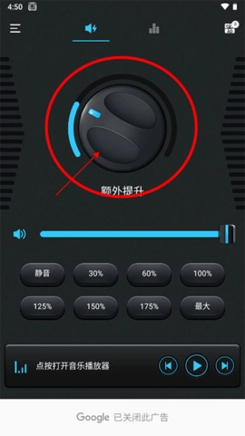 快速调整,音量增强滑块或30%60%100%最大按钮