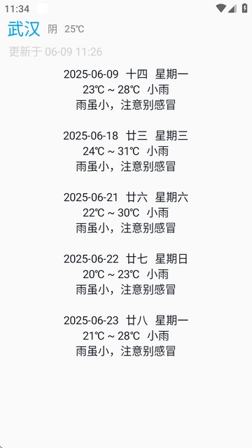 5、输入完成后,再次打开软件即可查看该城市的天气情况。