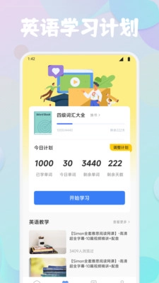 2.制定英语计划,为四级词汇书设置每日学习量和剩余天数,也可灵活调整。