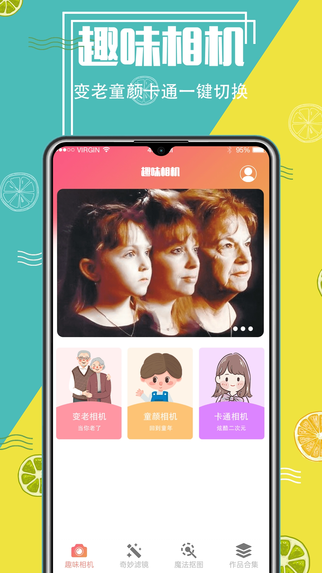 一键切换变老、童颜、卡通等多种效果