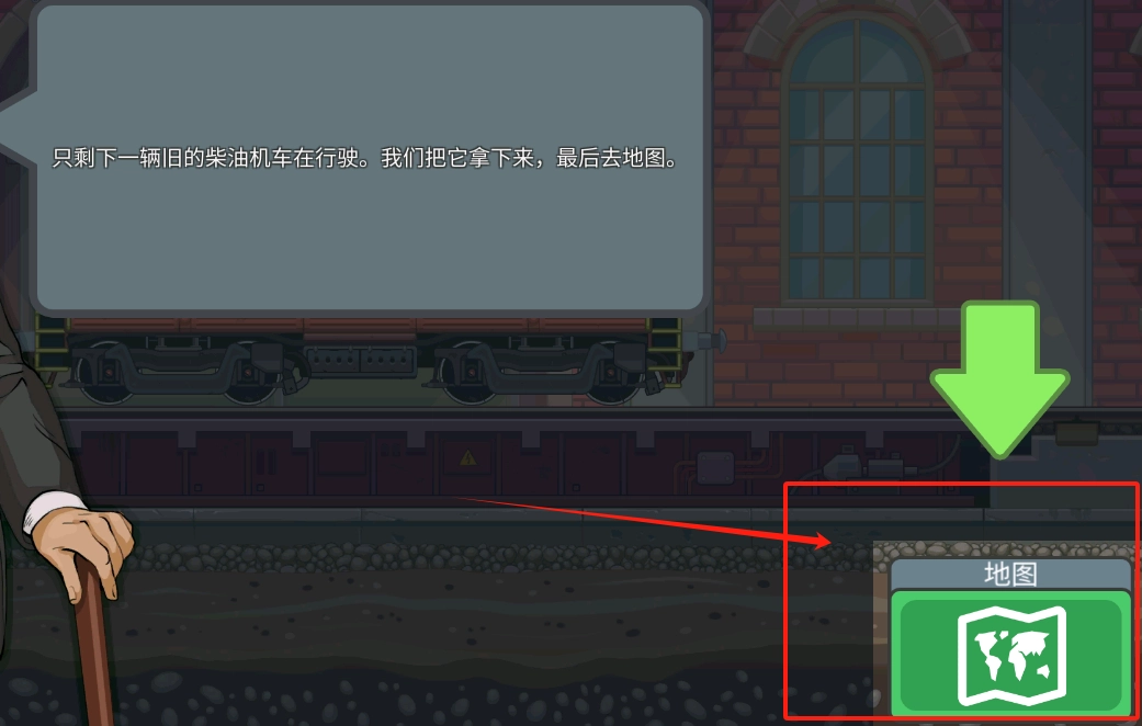 2. 轻点地图按钮查找任务,驾驶老旧柴油机车前往指定地点,达成运输目标。