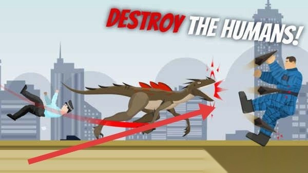3、倘若遭遇人类(像警察、强壮的男子这类),依据箭头的指示,操纵恐龙展开攻击,达成“摧毁人类”这一任务,进而推动关卡进程。
