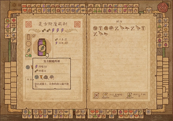 5、复方附魔药剂:融合了闪电III与中毒II的特性,将其涂抹在武器上,能让敌人遭受巨大的痛苦。