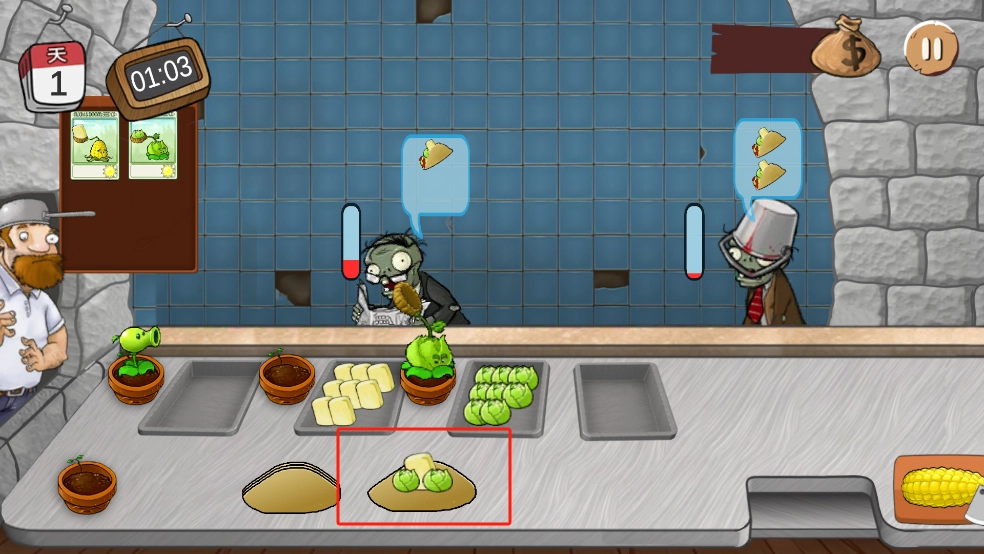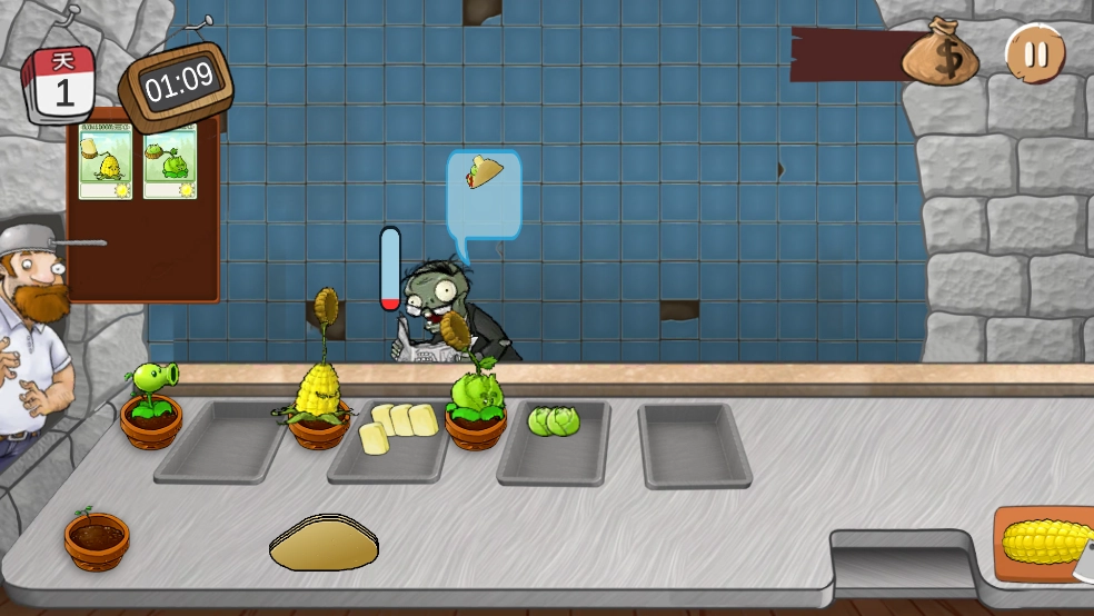 5、每个僵尸都具备一个耐心值,只要在其耐心消耗殆尽之前,将沙威玛交给僵尸,就能获取金币。