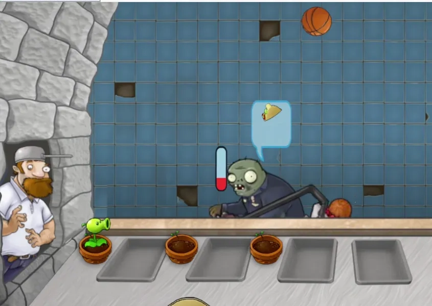 在游戏中,经典设备纷纷变成了植物们的“舞台”,像豌豆射手就取代了烤肉机。