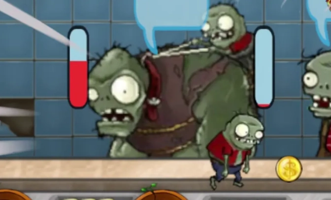 巨人僵尸具备扔出小鬼僵尸的能力,还能够把柜台的钱偷走,其在游戏中的作用等同于原游戏里的小偷角色。