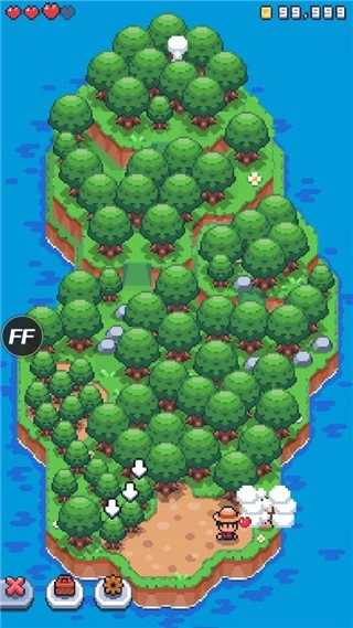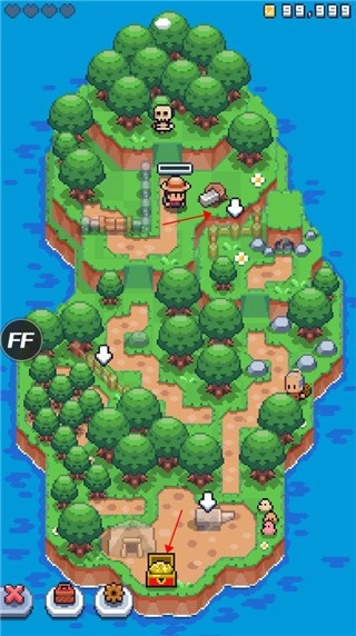 2、升级武器和道具,增强体力(红心)。这样才能更好地应对森林中的骷髅头,它们会偷走玩家的材料。