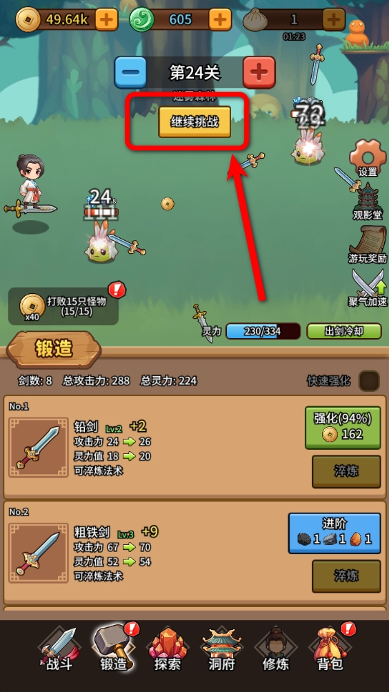 4.点击继续挑战即可挑战BOSS关卡。