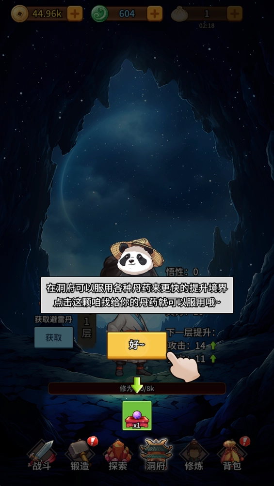 5.当你的等级足够高时,就可以获得洞府,在洞府里面打坐获得更多修为。