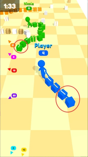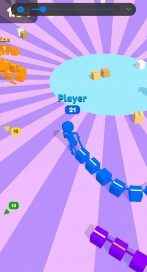 1、进入竞技场后操控角色移动,收集散落的箱子来延长自身队伍,注意避开其他玩家的行进路线。
